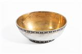 Ciotolina ovale realizzata in argento 800 con fregi modulari, interno dorato, h cm 5 x 11,5 x 8,8, imperfezioni - Grammi 127,70