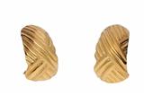 Paio di orecchini in oro giallo 750, con decoro a righe, - Grammi 6,40