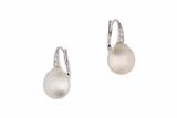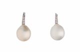 Orecchini con perle coltivate d'acqua dolce barocche e diamanti, realizzati in oro bianco 750, diamanti taglio brillante ct 0,06 ca tot, colore H-J, purezza VVS-VS, chiusura a monachina, perle mm 10 -10,5, lunghezza cm 2 - Grammi 5,60