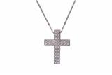 Collana con pendente mobile a forma di croce con diamanti, realizzati in oro bianco 750, diamanti taglio brillante ct 0.15 ca tot, colore H-J, purezza VVS-VS, lunghezza cm 45 - Grammi 5,70
