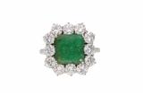 Anello con diamanti e smeraldo, realizzato in oro bianco 750, diamanti taglio brillante ct 1.8 ca tot, colore H-J, purezza VVS-VS, misura 13 - Grammi 5,40