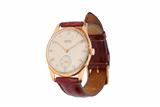 Vulcain Grand Prix, orologio in oro, anni 60', movimento manuale calibro 59, quadrante champagne, numeri arabi, secondi ad ore sei, cinturino commerciale in pelle, diametro mm 36, quadrante rigenerato, imperfezioni, si consiglia assistenza tecnica - Grammi 41,00