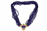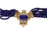 Collier composto da 10 fili di piccole sfere di lapislazzuli, con fermezza in oro giallo 750 e lapislazzuli cabochon, lunghezza cm 42 - Grammi 75,70