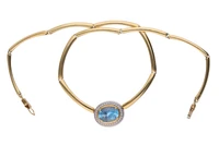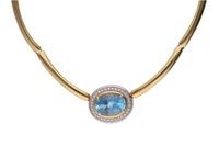 Collier con diamanti e topazio azzurro, realizzato in oro bicolore 750, diamanti taglio brillante ct 0,50 ca tot, colore H-J, purezza VS-SI, lunghezza cm 42 - Grammi 25,50