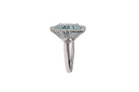Anello con diamanti e acquamarina, realizzato in oro bianco 750, diamanti taglio brillante ct 1,15 ca tot, colore H-J, purezza VS-SI, acquamarina ct. 8 ca con lieve scheggiatura, imperfezioni, misura 22 - Grammi 11,10
