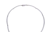 Collana con diamanti e due perle coltivate, in oro bianco 750, centrale finemente realizzato in oro basso ed argento, diamanti taglio brillante ct 13 totali circa, colore H-J, purezza VS-SI, lunghezza 38 cm, difetti - Grammi 48,80