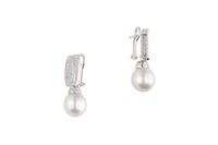 Paio di orecchini pendenti con perle Mari del Sud e diamanti, realizzati in oro bianco 750, diamanti taglio brillante ct 1,2 ca tot, colore H-J, purezza VVS-VS, chiusura perno e clip, perle mm 13 ca, lunghezza cm 3,5 ca - Grammi 21,60