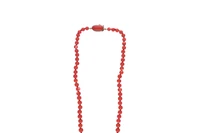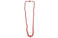 Collana di coralli con chiusura in oro 750 e corallo taglio cabochon di forma ovale, coralli a gradazione da 5 a 14 mm, lunghezza 63 cm, imperfezioni - Grammi 49,50