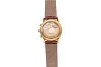 Bulova, cronografo in oro, movimento automatico, cal. ETA 7750, ref. C 825008, funzione giorno e data alle ore tre, cinturino in pelle e fibbia ad ardiglione Bulova in metallo, dimensioni 38 mm, parti graffiate, difetti, si consiglia assistenza tecnica - Grammi 80,60