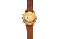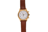 Hamilton, cronografo in oro, movimento automatico, cal. ETA 7750, ref. 366110, cassa N. 037/150, datario ad ore tre, cinturino in pelle e fibbia ad ardiglione Hamilton in metallo, dimensioni 40 mm, parti e vetro graffiati, parti ammaccate, difetti, si consiglia assistenza tecnica - Grammi 86,60