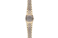 Tissot di forma, orologio in oro bicolore, movimento carica manuale, cal. Tissot 2180, bracciale integrato in oro bicolore, fibbia oro, dimensioni 23 x 20 mm., quadrante con ossidazioni, parti ammaccate, rigate, difetti, si consiglia assistenza tecnica - Grammi 43,60