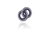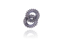 Spilla con diamanti e zaffiri, realizzata in oro bianco 750, diamanti taglio huit-huit ct 0,80 totali circa, colore H-J, purezza VS-SI, affiancati da zaffiri taglio composito forma rotonda, difetti - Grammi 11,20