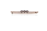 Spilla con diamanti, realizzata in oro basso e parte in argento, diamanti taglio vecchio, ct 1,3 totali circa, colore J-L, purezza VS-SI, imperfezioni - Grammi 4,50