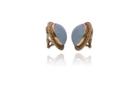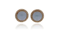 Paio di orecchini con acquemarine, realizzati in oro giallo 750, acquemarine taglio cabochon di forma rotonda, difetti - Grammi 12,10