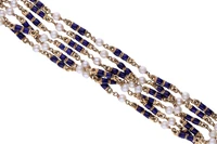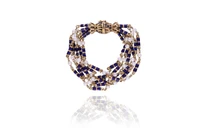 Bracciale con perle coltivate, pietre e smalti realizzato in oro 750, perle coltivate 4 mm, punzoni 750-1AR ante 1969, lunghezza 18,5 cm, smalto con scheggiature, parte staccata, difetti - Grammi 50,30