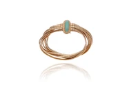 Bracciale con turchese trattato, composto da 7 fili in oro giallo 750, turchese trattato taglio cabochon forma a navette, lunghezza cm 20, difetti - Grammi 42,20
