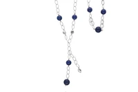 Parure con pietre realizzata in oro bianco 750, composta da collana, bracciale e paio di orecchini, lunghezze regolabili collana 52 cm e bracciale 25 cm, difetti - Grammi 48,60