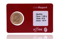 Sterlina inglese, Elisabetta II, anno 1974, realizzata in oro 916, lievi difetti - Grammi 8,00