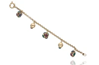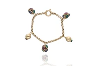 Bracciale con rubini, zaffiri e pietre in oro giallo 750, rubini e zaffiri taglio cabochon di forma ovale, lunghezza 19,5 cm, parti scheggiate, lievi difetti - Grammi 19,90