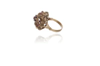 Anello con pietre, realizzato in oro giallo 750, misura 13, due pietre mancanti, scheggiature, imperfezioni - Grammi 9,30