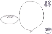Parure con diamanti, composta da collana, bracciale, anello e paio di orecchini, realizzati in oro bianco 750, diamanti taglio brillante ct 1,5 totali circa, colore H-J, purezza VS-SI, lunghezza 45 cm, dimensioni 6,2x5,3 cm, misura 17, chiusura con perno e clip, difetti - Grammi 45,80