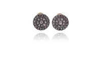 Paio di orecchini con diamanti, realizzati in oro basso ed argento, diamanti taglio rosa corone' ct 2 totali circa, chiusura con perno e clip, imperfezioni - Grammi 14,60