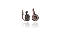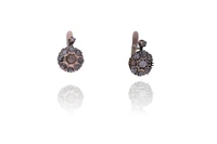 Paio di orecchini con diamanti realizzati in oro basso, diamanti taglio rosa ct 0,50 totali circa, diamante mancante, chiusura a monachina, scheggiature, parti saldate e incollate, difetti - Grammi 4,80