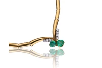Collana con diamanti e smeraldi in oro due colori 750, diamanti taglio brillante ct 0,20 totali circa, colore I-K, purezza VS-SI, smeraldi cuore taglio composito ct 0,50 totali circa, lunghezza 42 cm circa - Grammi 20,10