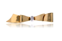 Spilla con diamanti in oro due colori 750, diamanti taglio huit huit ct 0,06 totali circa, lunghezza 7 cm - Grammi 10,40