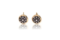 Paio di orecchini con diamanti, in oro 750, parte argento, diamanti taglio rosetta, lievi scheggiature, lunghezza 1,8 cm - Grammi 7,20