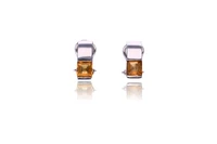 Paio di orecchini con pietre, in oro bianco 750, pietre quadrate taglio a gradini, lievi imperfezioni, lunghezza 1,5 cm - Grammi 5,00