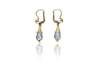 Paio di orecchini con pietre, in oro 750, pietre a goccia sfaccettate, lunghezza 3,5 cm - Grammi 5,20