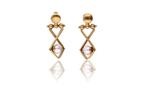 Paio di orecchini con perle d'acqua dolce, in oro 750, perle d'acqua dolce 6 mm, lievi imperfezioni, lunghezza 2,8 cm - Grammi 4,20