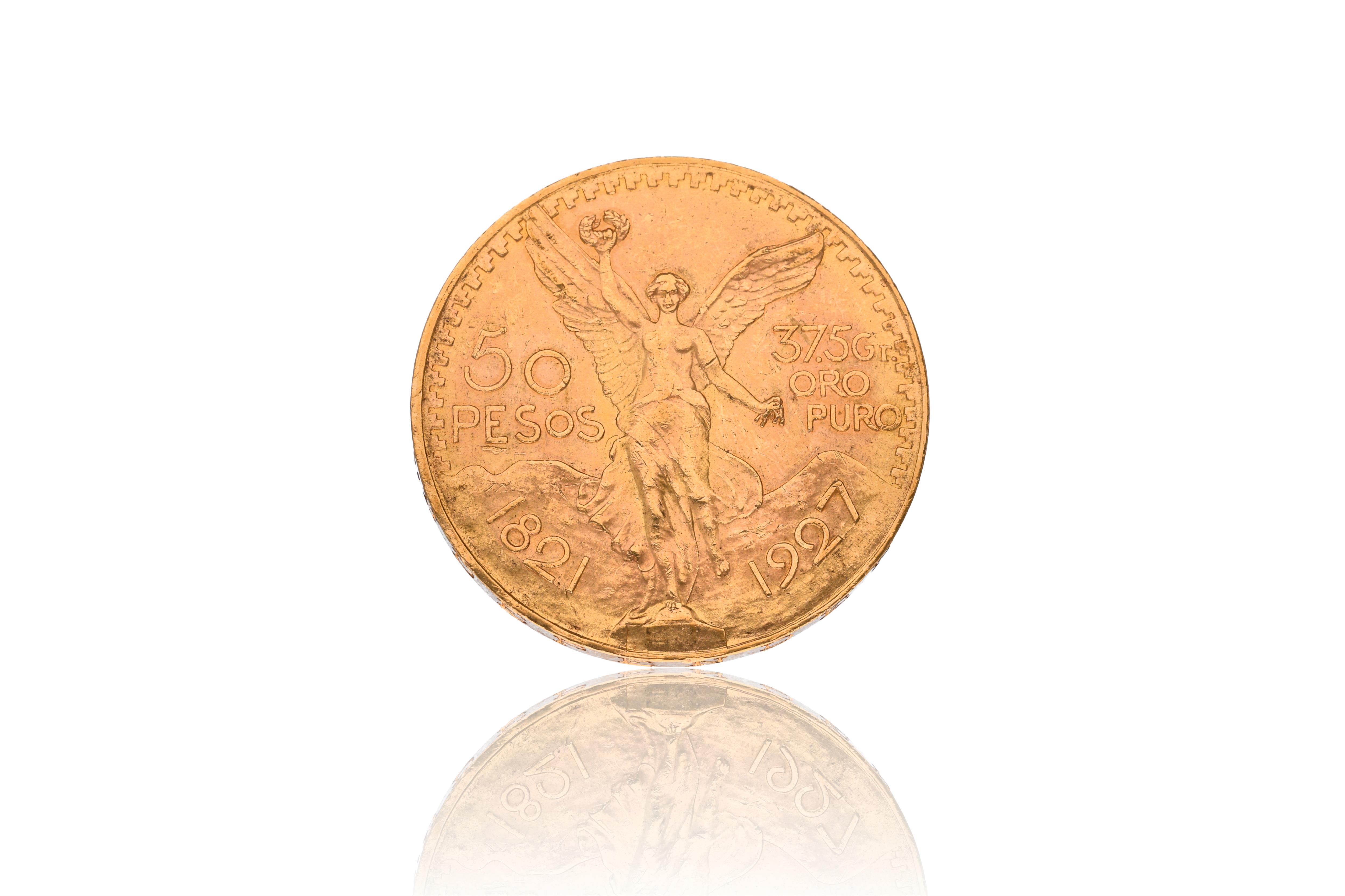 50 Pesos, Messico, in oro 900, parti ammaccate, imperfezioni - Grammi 41,60