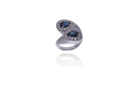 Anello con zaffiri e diamanti, realizzato in oro bianco 750, diamanti taglio brillante, ct 0,50 totali circa, colore I-K, purezza VS-SI, zaffiri taglio composito di forma a goccia, misura 11,5 cm, imperfezioni - Grammi 14,50