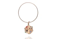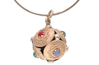 Bracciale con pendente con pietre realizzati in oro bicolore 750, diametro 6 cm, imperfezioni - Grammi 35,00