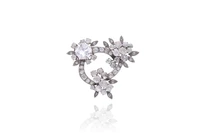 Spilla con diamanti e pietra, in oro 750, parte in platino, diamante sintetico taglio vecchia Europa ct 3,8 circa, diamanti taglio vecchia Europa e taglio rosette ct 6 totali circa, colore J-L, purezza SI-I, lievi scheggiature, imperfezioni, lunghezza 4,5 cm - Grammi 14,40