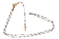 Rosario in oro giallo 750, con grani in oro bianco, imperfezioni, lunghezza cm 48 - Grammi 3,90