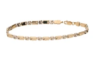 Bracciale in oro giallo 750 a piccoli elementi satinati, raccordati da maglie in oro bianco, imperfezioni, lunghezza cm 20,5 - Grammi 5,90