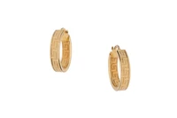 Paio di orecchini a cerchio, realizzati con decoro geometrico in oro giallo 750, imperfezioni, diametro cm 2 - Grammi 2,40