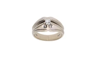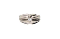 Anello con diamante, in oro bianco 750, diamante taglio brillante ct 0,15 ca, colore H-J, purezza VVS-VS, imperfezioni, misura 18 - Grammi 9,60