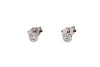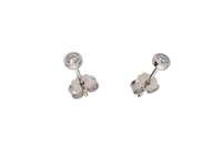 Paio di orecchini punto luce con pietre incolori, in oro bianco 750, imperfezioni, chiusura perno e fermo - Grammi 0,90