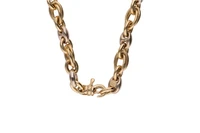 Collana a maglie ovali alternate a maglie marine, realizzata in oro bicolore 750, imperfezioni, lunghezza cm 46 - Grammi 24,70