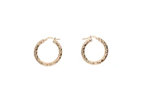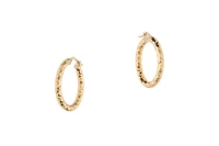 Paio di orecchini a cerchio tubolare con lavorazione diamantata, in oro giallo 750, imperfezioni, diam. mm 23 ca - Grammi 2,30