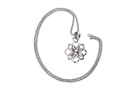 Catena con ciondolo a motivo floreale, realizzati in oro bianco 750, imperfezioni, lunghezza collana cm 60, diam ciondolo cm 3,3 - Grammi 10,30