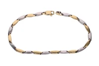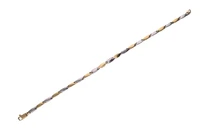 Bracciale a catena con maglie a moduli snodati di forma triangolare, realizzato in oro bianco e giallo 750, imperfezioni, lungh. cm 21 - Grammi 9,00