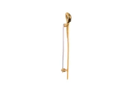 Spilla da foulard con diamanti, realizzata in oro bicolore 750, diamanti taglio huit huit ct. 0,09 ca tor, colore H-J purezza VS-SI, presenza di scheggiature, imperfezioni, lungh. cm 6 - Grammi 4,60