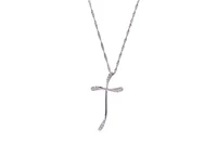 Collana con croce, realizzati in oro bianco 750 con pietre incolori, imperfezioni, lunghezza cm 39, croce dim cm 4,5x2,5 - Grammi 6,30
