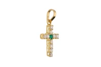 Crocetta con pietre, realizzata in oro giallo 750, imperfezioni, scheggiature, dim cm 3,2x1,6 - Grammi 3,30