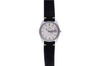 Omega Seamaster, orologio in acciaio, anni '60, mov aut, cal 752, N. rif fondello ST166032-ST168023, data e giorno, cinturino pelle e fibbia ad ardiglione in metallo commerciali, dim 36 mm, vite del meccanismo mancante, rimessa rapida non funzionante, difetti, si raccomanda assistenza tecnica - Grammi 53,80